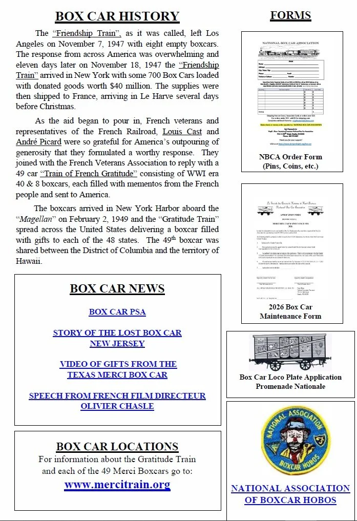 National Box Car Association TO VIEW OR PRINT PAGE 1 CLICK HERE TO VIEW OR PRINT PAGE 2 CLICK HERE TO VIEW OR PRINT PAGE 3 CLICK HERE