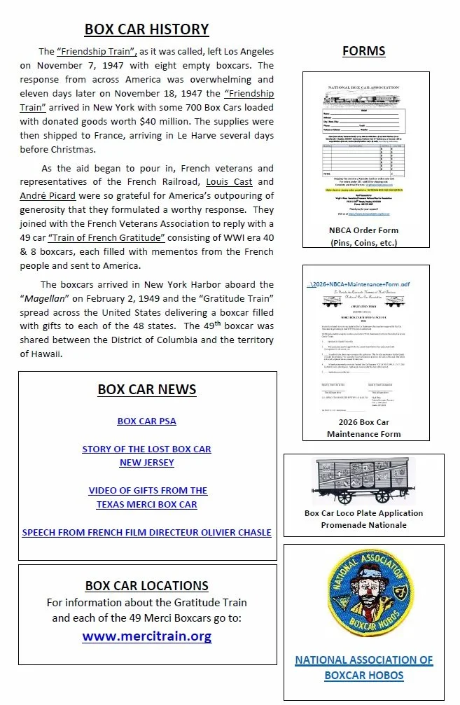 National Box Car Association TO VIEW OR PRINT PAGE 1 CLICK HERE TO VIEW OR PRINT PAGE 2 CLICK HERE TO VIEW OR PRINT PAGE 3 CLICK HERE